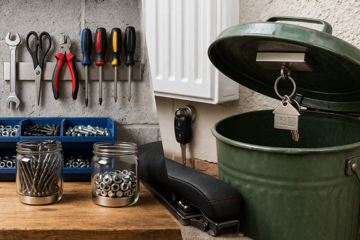 Спрятать запасной ключ от дома или дачи — задача не из легких. Классические тайники под ковриком давно стали притчей во языцех для воров. Попробуйте использовать неодимовые магниты прямоугольники или диски для создания невидимого сейфа. Приклейте мощный магнит с внутренней стороны металлической крышки мусорного бака, под днище автомобильного сиденья или за радиатор отопления. Ответную часть с ключом можно закрепить на самом предмете. Так ваш ключ будет надежно зафиксирован в воздухе, не издавая звуков и оставаясь абсолютно незаметным для посторонних глаз.